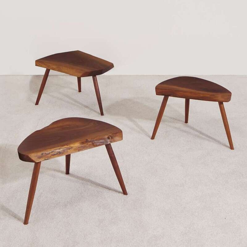 GEORGE NAKASHIMA (AMERICAN, 1905-1990) SET OF THREE PLANK STOOLS, NEW HOPE, PENNSYLVANIA, 1989