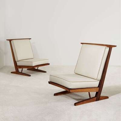 GEORGE NAKASHIMA (1905-1990) PAIR OF CONOID CUSHION CHAIRS, NEW HOPE, PENNSYLVANIA, 1984