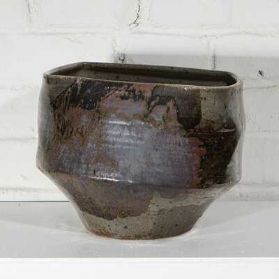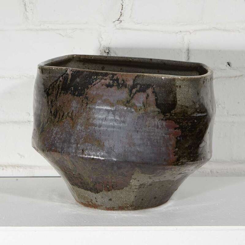 Thrown, faceted and ribbed glazed stoneware. Signed: "MASON" Applied paper gallery label: "Bryce Bannatyne Gallery 1.124.7"