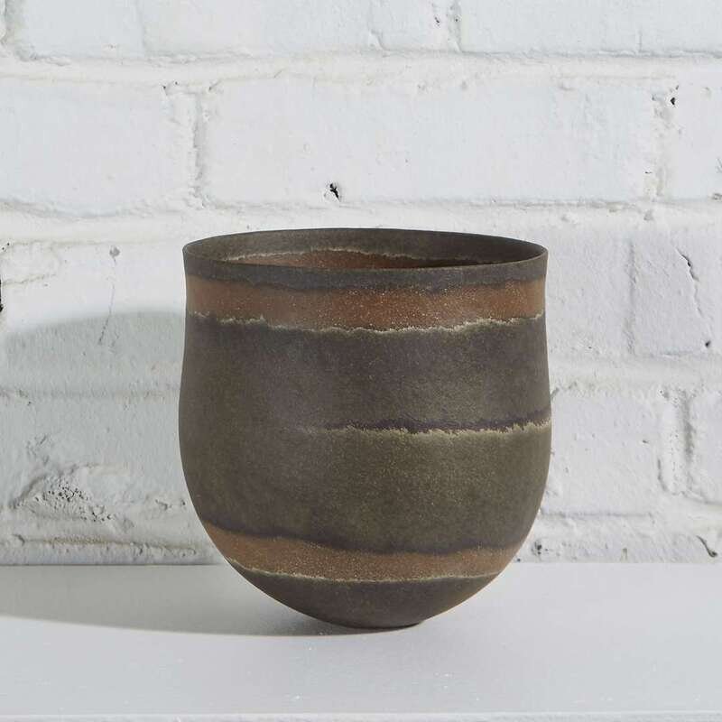 JENNIFER LEE (SCOTTISH, B. 1956) DARK OLIVE VESSEL WITH UMBER BANDS, LONDON, CIRCA 2005