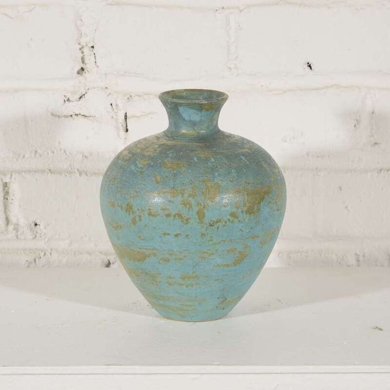 Thrown earthenware in Robin's egg blue glaze Impressed artist's seal Incised: "4.63"