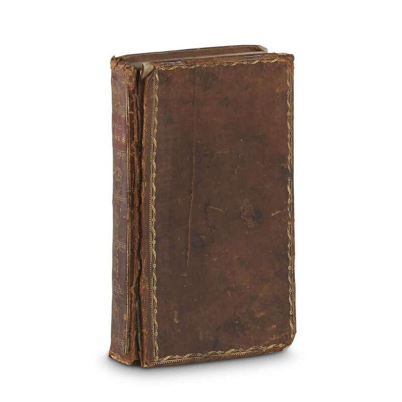 Paris: Chez Louis, 1798 [An VI]. 12mo. [4], (i)-xix (1), (1)-244 pp. Contemporary mottled brown calf, gilt, burgundy morocco spine label, marbled endpapers. Frontispiece. Complete with half-title. 2 pp. of early 20th century typescript relating to the execution of this book tipped in at front.
