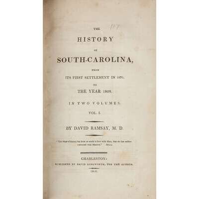 [Americana] Ramsay, David The History of South Carolina, from its first settlement in 1670, to The Year 1803