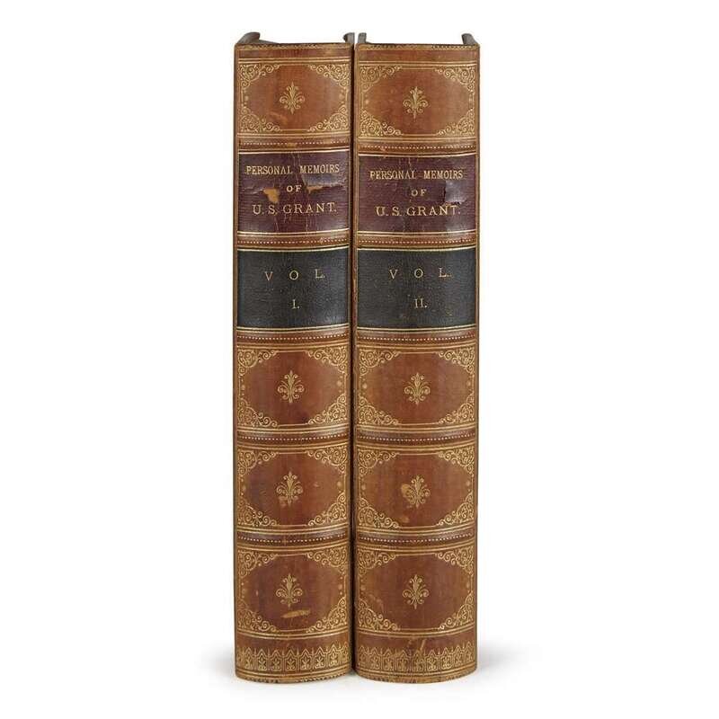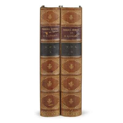 New York: Charles L. Webster, 1885-1886. First edition. Large 8vo. Original three-quarter tan calf, marbled boards and edges, spines gilt, red and black morocco spine labels. With 2 frontispiece portraits, 2 folding facsimiles, 2 etched plates (views), maps. In two volumes.