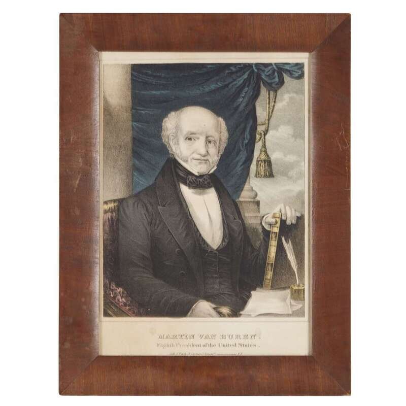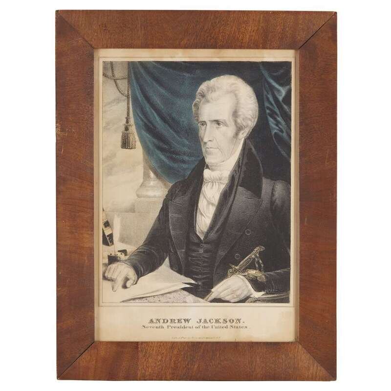 Includes: Currier, N., publisher. "George Washington. First President of the United States." New York, (ca. 1845-1856). Gale 2554. Currier, N., publisher. "Thomas Jefferson, Third President of the United States." (New York), (ca. 1845-1856). Gale 6500. Currier, N., publisher. "James Madison, Fourth President of the United States." New York, (ca. 1845-1856). Gale 3421. Currier, N., publisher. "Andrew Jackson. Seventh President of the United States." New York, (ca. 1845-1856). Gale 0230. Currier, N., publisher. "Martin Van Buren. Eighth President of the United States." New York, (ca. 1845-1856). Gale 4378. Fisher, J., publisher; Currier, N., lithographer. "Death of Harrison, April 4 A.D. 1841." Boston, (ca. 1841). Gale 1617. Fisher, J., publisher; (Currier, N., lithographer?). "John Tyler: Tenth President of the United States." Boston, (ca. 1850). Gale 3547. Currier, N., publisher. "James K. Polk, nominated for Eleventh President of the United States." New York, (ca. 1844). Gale 3409. Currier, N., publisher. "Franklin Pierce, Fourteenth President of the United States." New York, 1852. Gale 2304. Currier, N.; Ives, J., publishers. "Hon. Abraham Lincoln, 'Our Next President.'" New York, 1860. Gale 3125.