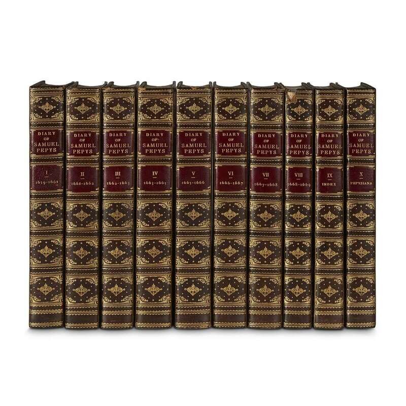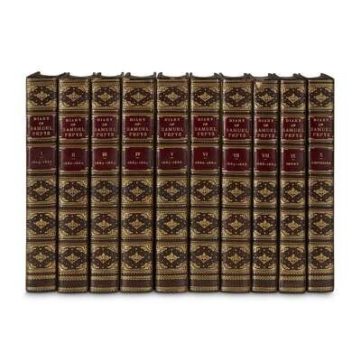 London: George Bell & Sons, 1897-1912. Mixed issue. Edited by Henry B. Wheatley. 8vo. Binding by Zaehnsdorf. Contemporary or near-contemporary full double gilt-fillet paneled green straight-grained morocco, richly gilt spine compartments, turn-ins gilt, top edge gilt, other edges untrimmed, burgundy morocco spine labels, marbled endpapers. In ten volumes.