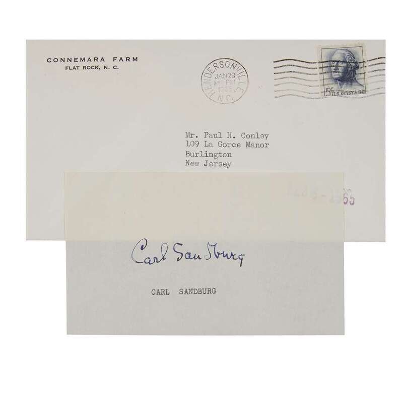Assorted autograph material relating to American authors. Includes signed cards and signed slips. 6 pieces.