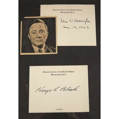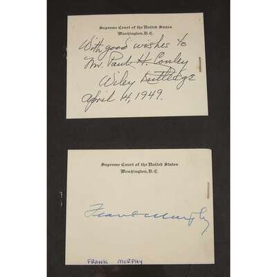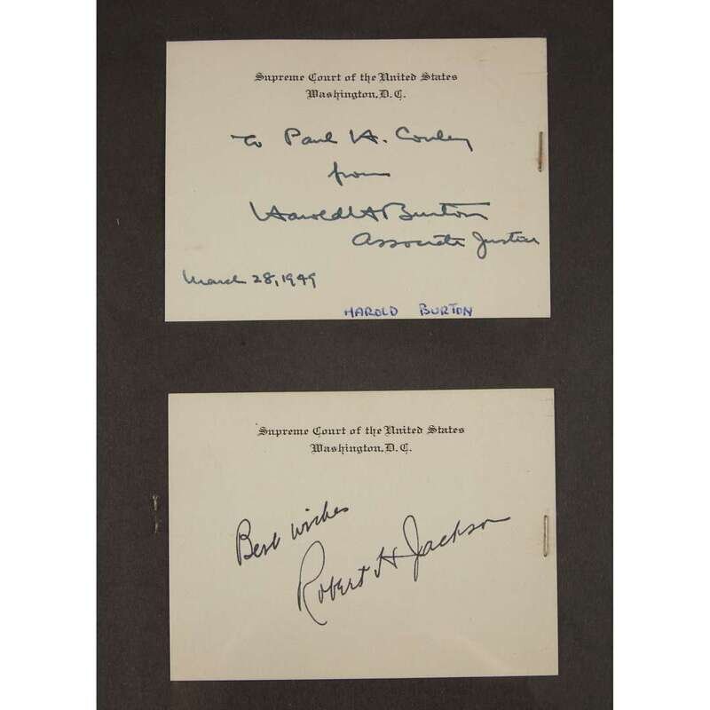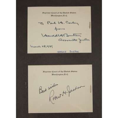Assorted autograph material of United States Supreme Court Justices, primarily 20th century. Signed and inscribed cards. 9 pieces.