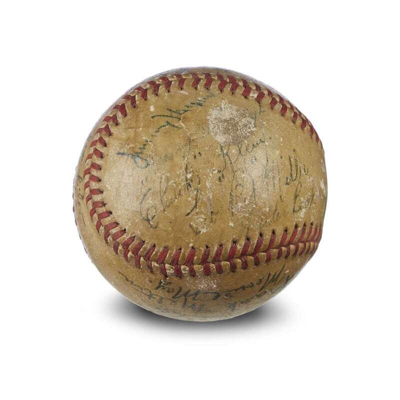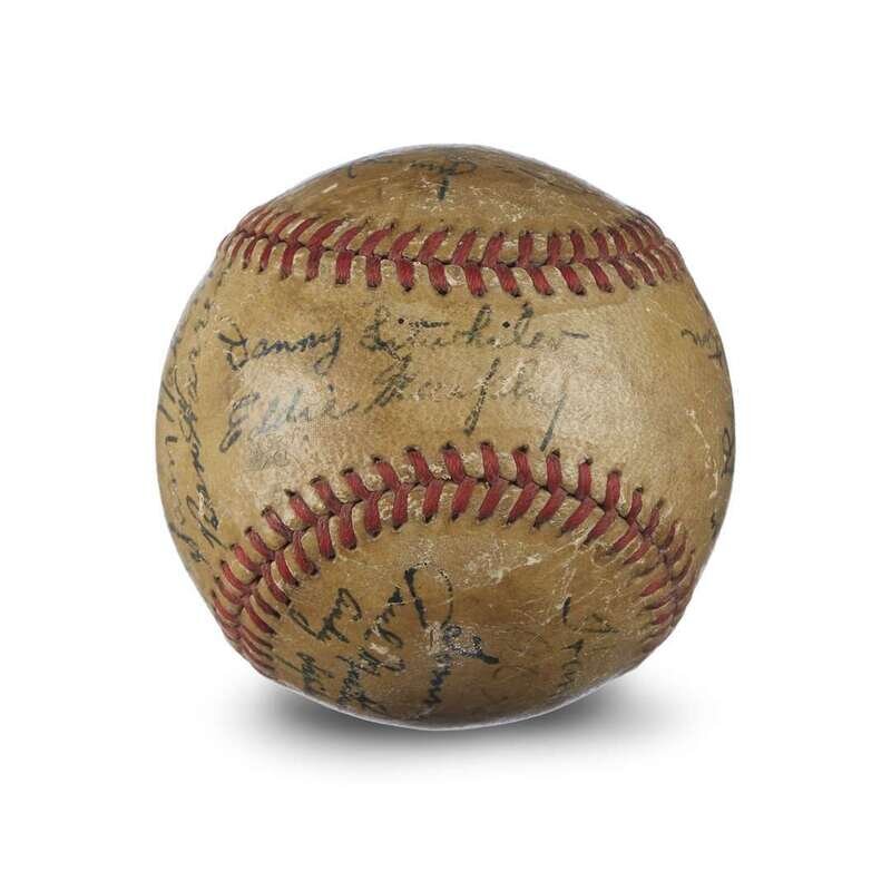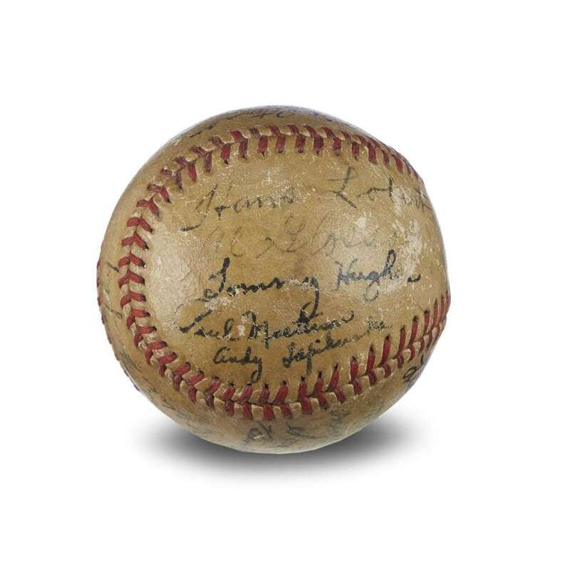 Baseball signed, likely during spring training as non-rostered players' signatures appear. An official National League ball.