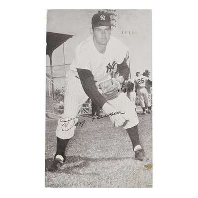Assorted autograph material by baseball players, primarily the New York Giants, New York Yankees, and Brooklyn Dodgers, and includes Hall of Fame members. 8 pieces.
