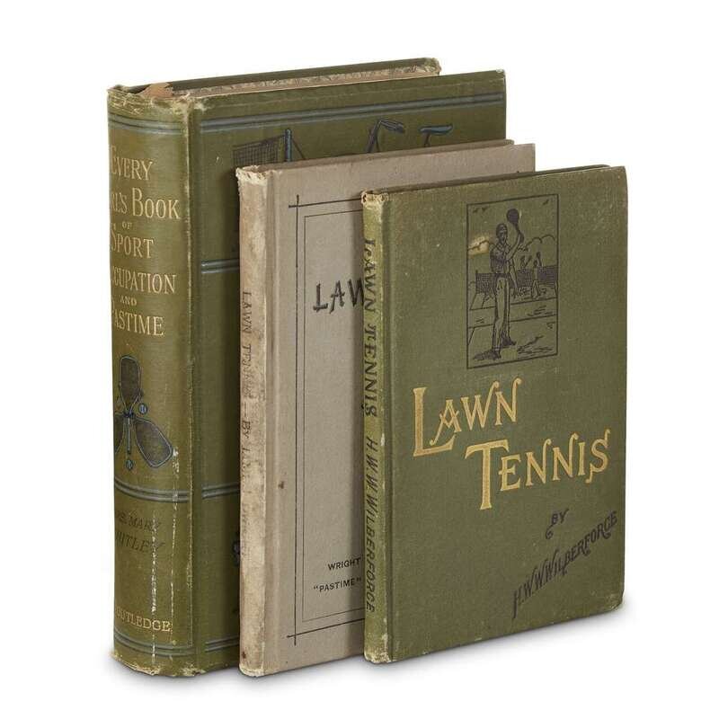 Dwight, James Lawn-Tennis Boston: Wright & Ditson, (1886). First edition. 12mo. Original black-lettered gray cloth. The first book written about tennis by an American Player. Wilberforce, H.W.W. Lawn Tennis. With a Chapter for Ladies by Mrs. Hillyard New York: Frederick A. Stokes, 1890. First American edition. Small 8vo. Original pictorial, gilt-lettered green cloth. Whitley, Mary, editor Every Girl's Book of Sport, Occupation and Pastime London, etc.: George Routledge, 1897. 8vo. original black and blue stamped pictorial gilt-lettered green cloth. Includes chapter on Lawn Tennis.