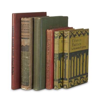 Myers, A. Wallis, editor Lawn Tennis at Home and Abroad London: George Newnes, 1903. 8vo. Original pictorial green and black stamped grey cloth. Numerous half-tone photo illustrations - including frontispiece and full-page photos. Dewhurst, Edward B. The Science of Lawn Tennis Philadelphia: Innes & Sons, 1910. First edition. 8vo. Original gilt-lettered green cloth. Photo plates, figures in text. Baddeley, Wilfred Lawn Tennis London: George Routledge, (1910). Fourth Edition, Revised. 12mo. Original white-stamped pictorial red cloth. Photo plates. Burns, James How to Play Tennis New York: Outing Publishing Company, 1915. First edition. 8vo. Original dark green stamped light green pictorial cloth. Photo plates, figures in text. Little, Raymond D. Tennis Tactics New York: Macmillan, 1923. 12mo. Original dark green stamped pictorial light green cloth. Plates - including frontispiece. Budge, Lloyd Tennis Made Easy New York: A.S. Barnes, (1945). 8vo. Original black-lettered brick-red cloth. Frontispiece, photo plates.
