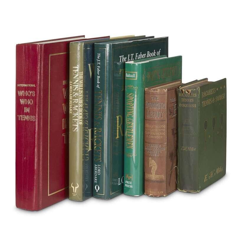 (Beaufort, The Duke of, editor. The Badminton Library of Sports and Pastimes) Tennis; Lawn Tennis; Rackets; Fives London: Longmans, Green, 1891. Square 8vo. Original pictorial brown cloth. Frontispiece, half-tone and other illustrations. Miles, Eustace Racquets, Tennis, and Squash New York: Appleton, 1903. First American edition. Small 8vo. Original cloth. Plates. Rough copy. Aberdare, Lord The Willis Fabre Book of Tennis & Rackets London, etc.: Stanley Paul, (1980). First edition. 4to. Blue cloth. Color plates, other illustrations. Aberdare, Lord The J. T. Farber Book of Tennis and Rackets London: Quiller Press, (2001). First edition. 4to. Original green cloth, dust jacket. Illustrations. International Who's Who in Tennis (Dallas), (1983). Thick 4to. Original imitation red leather, gilt. Bright copy. Baltzell, E. Digby Sporting Gentlemen: Men's Tennis from the Age of Honor to the Cult of the Superstar New York. etc.: The Free Press, (1995). First printing. 8vo, original white cloth-backed boards, dust jacket. Plates. Near Fine+.