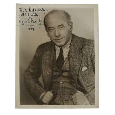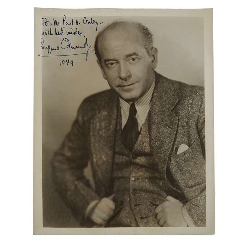 Assorted autograph material relating to classical music conductors and composers. Includes signed photographs and signed cards. 4 pieces.