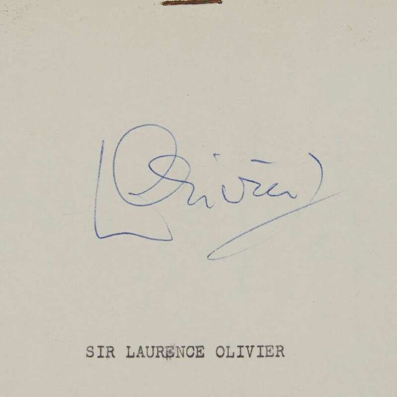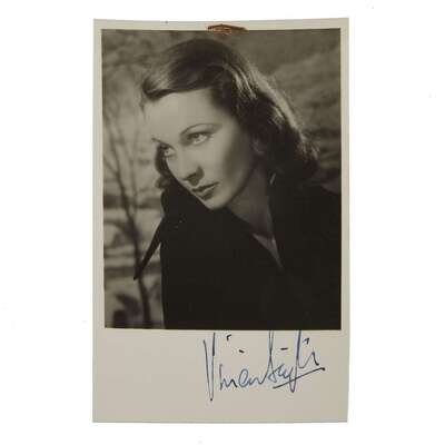 Leigh, Vivien. Silver print bust portrait. Signed. Olivier, Laurence. Small paper sheet signed.