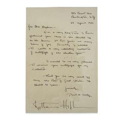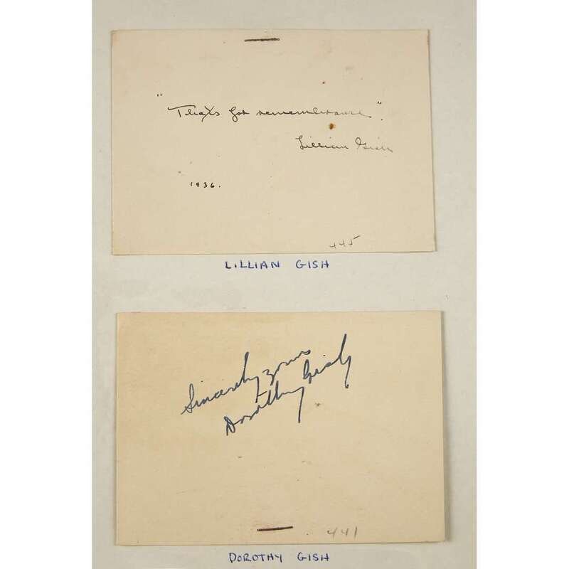 Assorted autograph material relating to the performing arts, primarily American motion picture performers. Includes signed photographs, typed letters signed, and other signatures. 12 pieces.