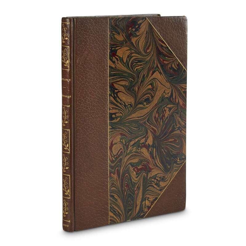 Paris: Librairie L. Conquet, L. Carteret et Cie, Successeurs, 1900. 1/300 (of 350). 4to. Later 20th century three-quarter crushed gilt-ruled brown levant and marbled boards, gilt-foliate spine compartments, untrimmed edges. With 34 color illustrations engraved by Ducouritoux et Huillard after watercolors by Henri Caruchet.