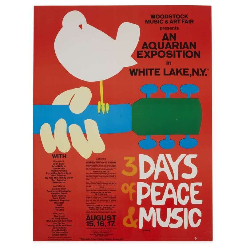 Original color lithographic festival poster, printed on heavy stock. New York: Woodstock Music, 1969.