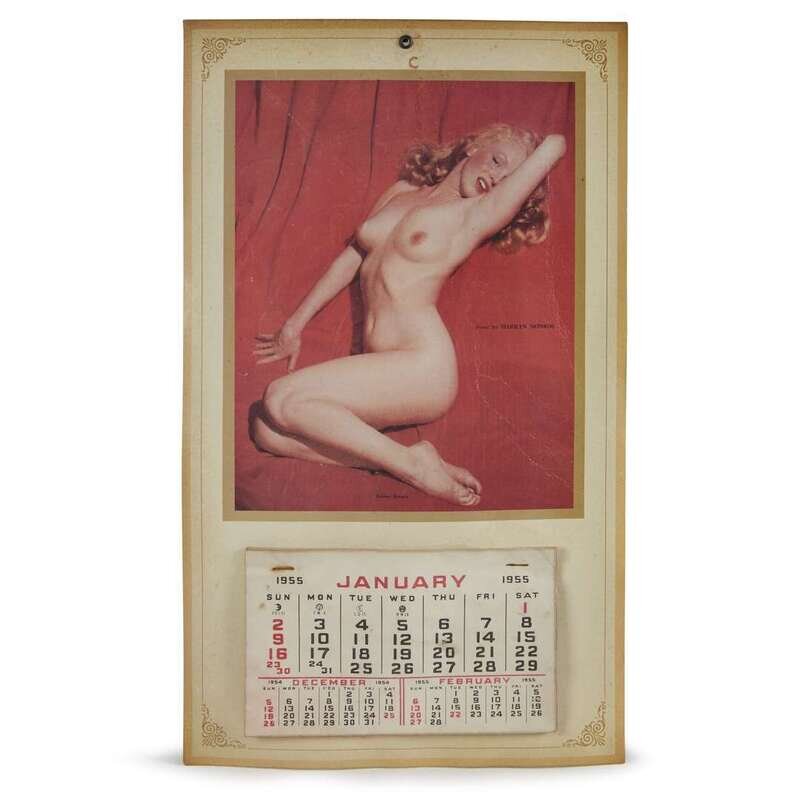 No place, no publisher, 1955. Wall calendar featuring a topless model, "Posed By Marilyn Monroe."