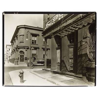 Gelatin silver contact print 8 x 10 in. (202 x 255 mm) "Federal Art Project/'Changing New York,'" "50 commerce st.," and "Duplicate" ink stamps on verso; titled, dated (3/23/37), and otherwise coded in ink on same.