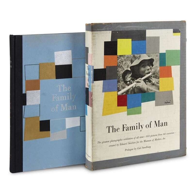 (New York): Simon and Schuster, (1955). First edition, deluxe issue. 4to. 207 pp. (contains 12 pages of installation photographs by Ezra Stoller, not found in trade edition). Prologue by Carl Sandburg. Introduction by Edward Steichen. Binding and packaging by legendary designer Leo Lionni. Quarter black cloth over blue paper-covered boards stamped in gold, silver, black, etc.; photographic endpapers; top edge stained yellow, other edges stained red; printed on much heavier stock than trade edition; enclosed in a grey corrugated cardboard box, with large paper wraparound label, lightly worn and with some professional restoration. A near-fine copy rarely found in its original box.