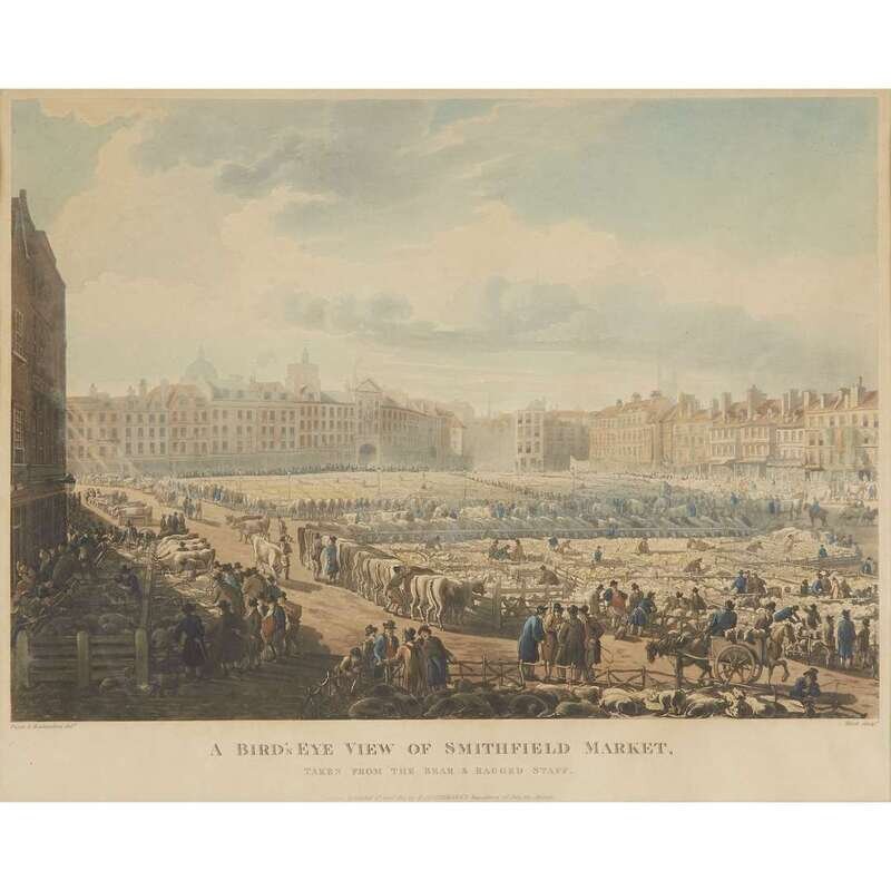[Prints] Ackermann, Rudolph (publisher) "A Bird's Eye View of Smithfields Market, Taken from the Bear and Ragged Staff"
