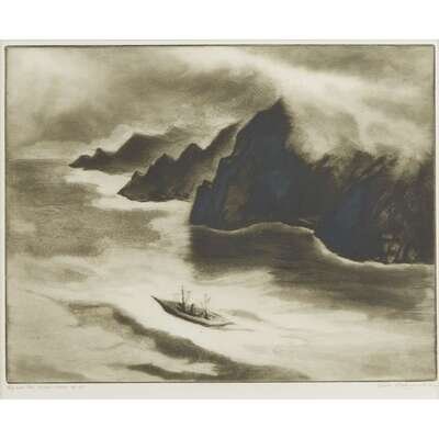 [Prints] Kloss, Gene (American, 1903-1996) Fog over The Golden Gate