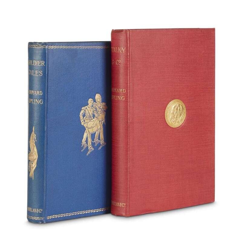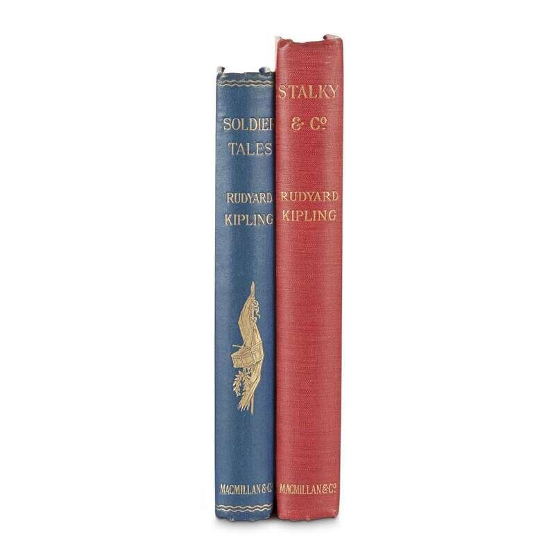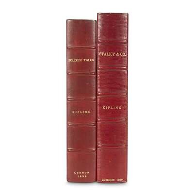 Soldier Tales London: Macmillan, 1896. First edition. Small 8vo. Original gilt-pictorial blue cloth, gilt-lettered and pictorial spine, all edges gilt. Tight, bright copy housed in custom half scarlet morocco and cloth slip case with red cloth chemise. With book-plate of George Barr McCutcheon on front paste-down. Livingston 133. Stalky & Co. London: Macmillan, 1899. First English edition. 8vo. Original red cloth with gilt elephant head on front cover, gilt-lettered spine, top edge gilt. Tight, bright copy in custom half scarlet and cloth slip case with red cloth chemise. Livingston 216.