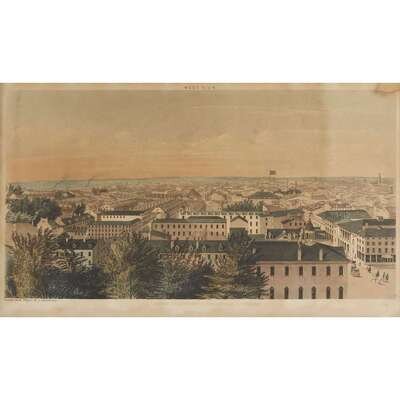 Three tinted and hand-colored lithographs after Edwin Whitfield. All New York: Endicott, [ca. 1850]. Includes: "North View. Looking Across Chestnut St. Towards Spring Garden, Northern Liberties, and Kensington." "South View. Looking Towards Navy Yard, Southwark and Moyamensing." "West View. Looking Up Chestnut St. Towards West Philadelphia."