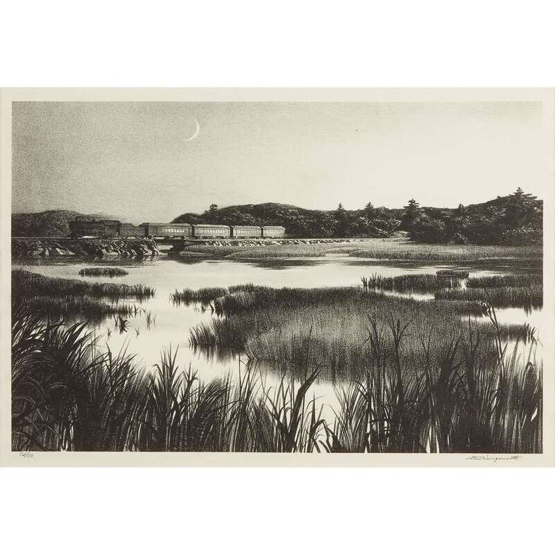 [Prints] Wengenroth, Stow (American, 1906-1978) Evening Train (Wiscasset, Maine)