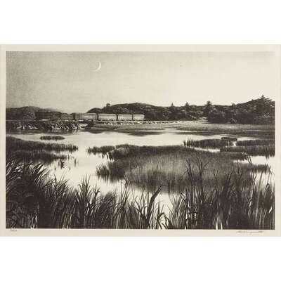 Lithograph 10 x 15.125 inches Signed in pencil lower right, edition of 50. Framed.