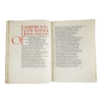 (The Doves Press) Hammersmith, 1902. 1/300 (of 328). 4to. Original limp vellum, gilt-lettered spine. Printed in black and red, hand drawn initials in blue and red. Ex-library. Ransom Doves #5, p. 251.