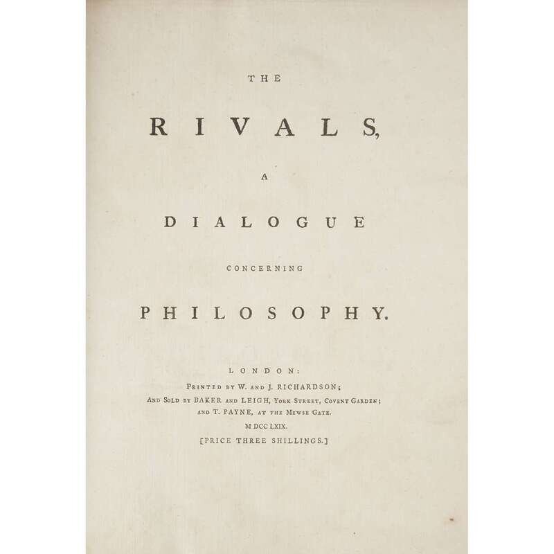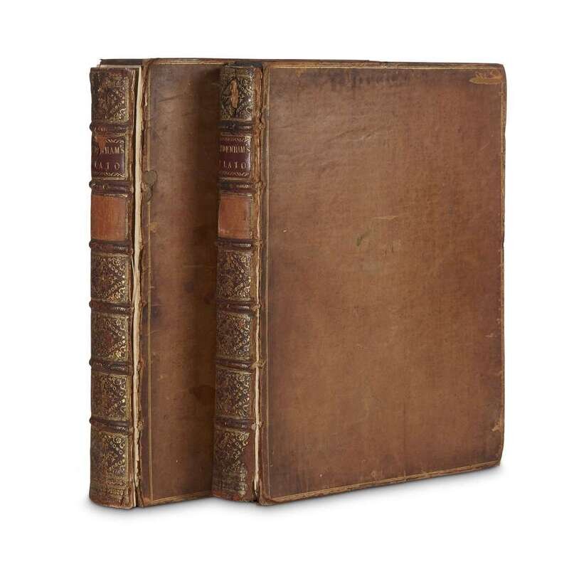 London, 1759-1771. Mixed editions. 4to. Signed in ink at foot of "Synopsis" dedication page by Floyer Sydenham, editor and translator. Contemporary tan calf. With book-plates of Leonard Smelt and Charles Henry Hall. In two volumes. Bound with "A Synopsis or General View of the Works of Plato" "Meno, A Dialogue Concerning Virtue" "The Greater Hippias... Concerning the Beautifull" "The Lesser Hippias... Concerning Voluntary and Involuntary Error" "The Rivals... Concerning Philosophy" "Io... Concerning Poetry" "The Banquet... Concerning Love. The First Part." "Proposals for a New Subscription"