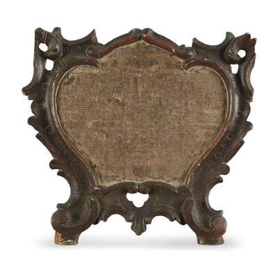 Germany(?), late 18th or early 19th century. Likely for Protestant worship. Heart-shaped letterpress broadside with hand-colored border in heart-shaped decorated hardwood and gesso frame. Uncommon.