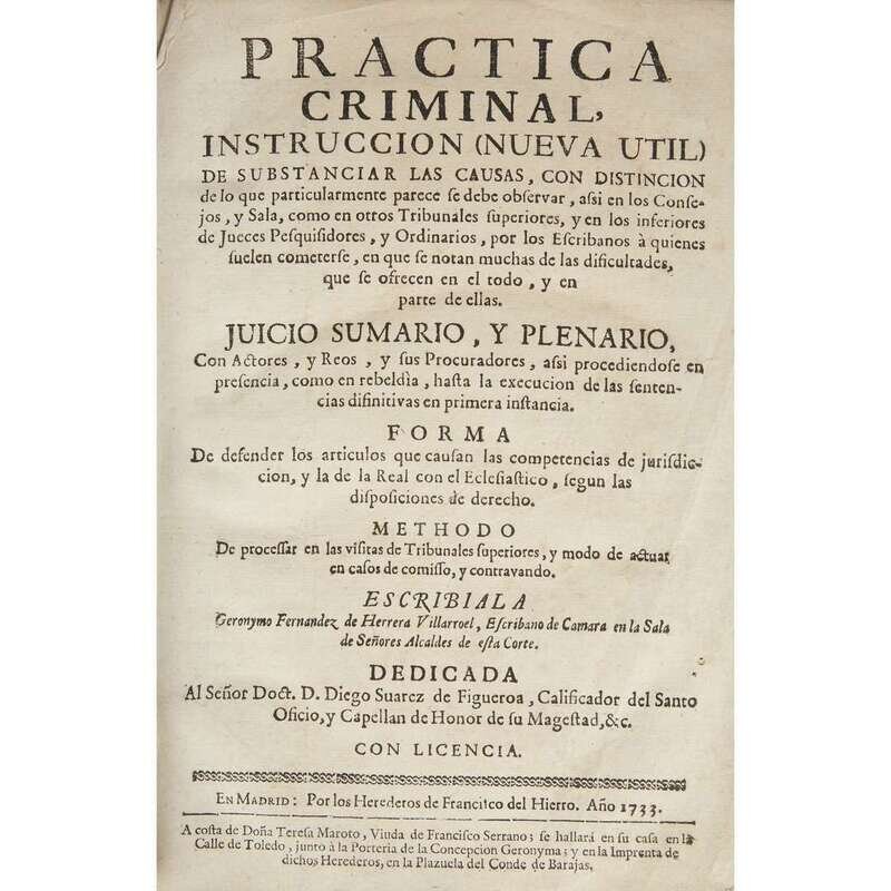 Fernandez de Herrera Villarroel, Geronymo Practica Criminal, Instruccion (Nueva Util) de Substanciar las Causas...