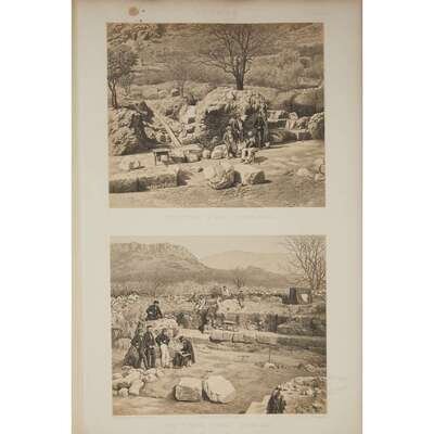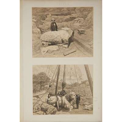 London: Day & Son, 1862-1863. First edition. Two 8vo text volumes and one folio. Green library-style buckram binding. Text volumes illustrated with 14 engraved plates and 27 woodcut illustrations, atlas volume illustrated with 97 engraved and lithographic plates, some tinted and colored. Ex-library. [Blackmer 1192, Atabey 868]. In three volumes.