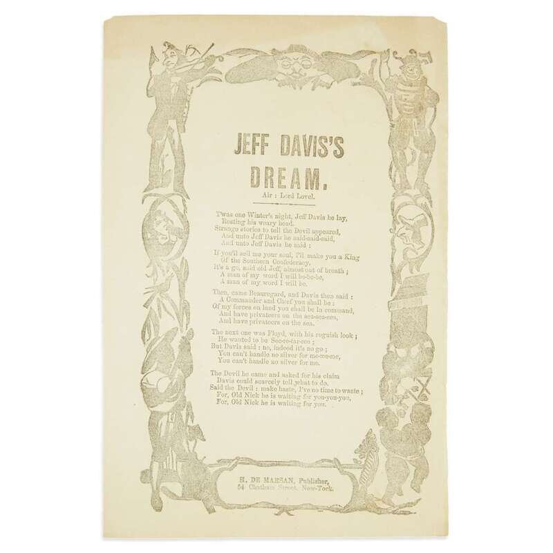 [Americana] Civil War Song Sheet Jeff Davis's Dream. Air: Lord Lovel