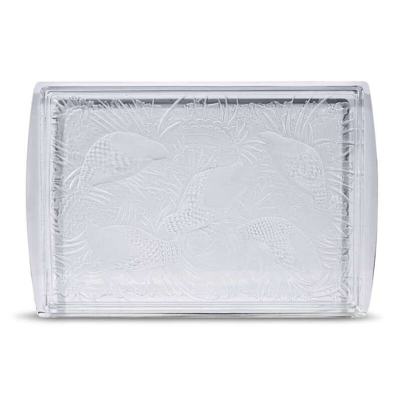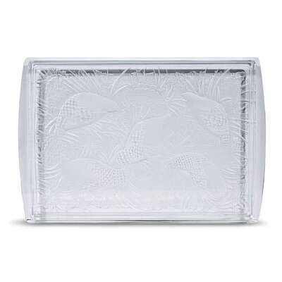 Rectangular tray with partridge and foliate decoration, marked to underside.