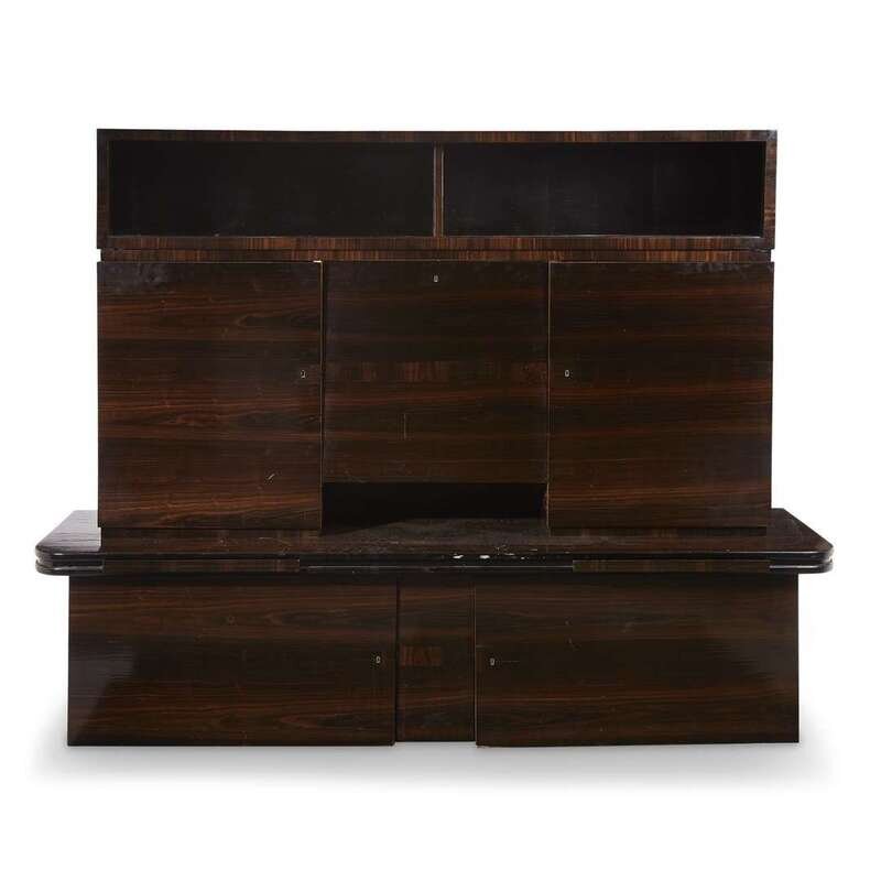 An Art Deco macassar ebony cabinet en suite with flip top desk 20th century