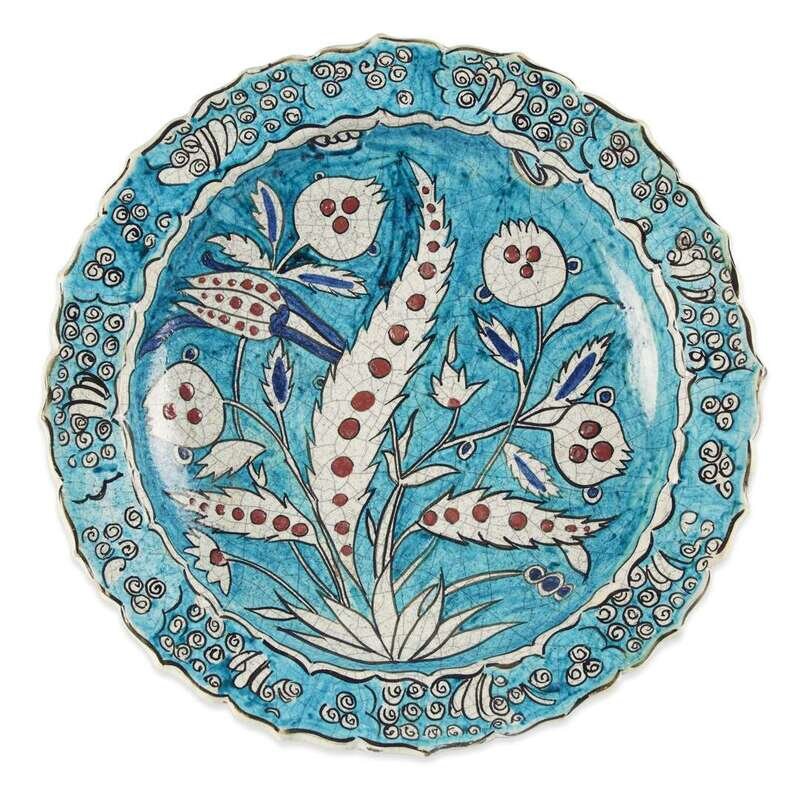 A Lachenal Isnik style glazed earthenware charger Les blesseés de l'atelier Lachenal