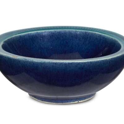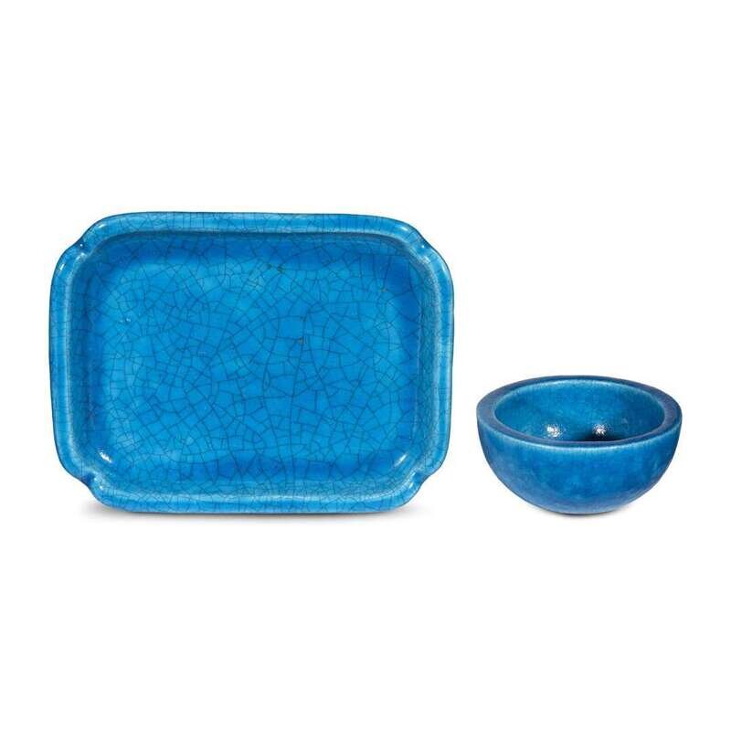 Together with a turquoise blue glazed bowl and platter, both underside signed, the bowl for Carole Stupell Ltd., the platter Lachenal; and a earthenware blue bowl, by Rouart, mid-20th century. (4).
