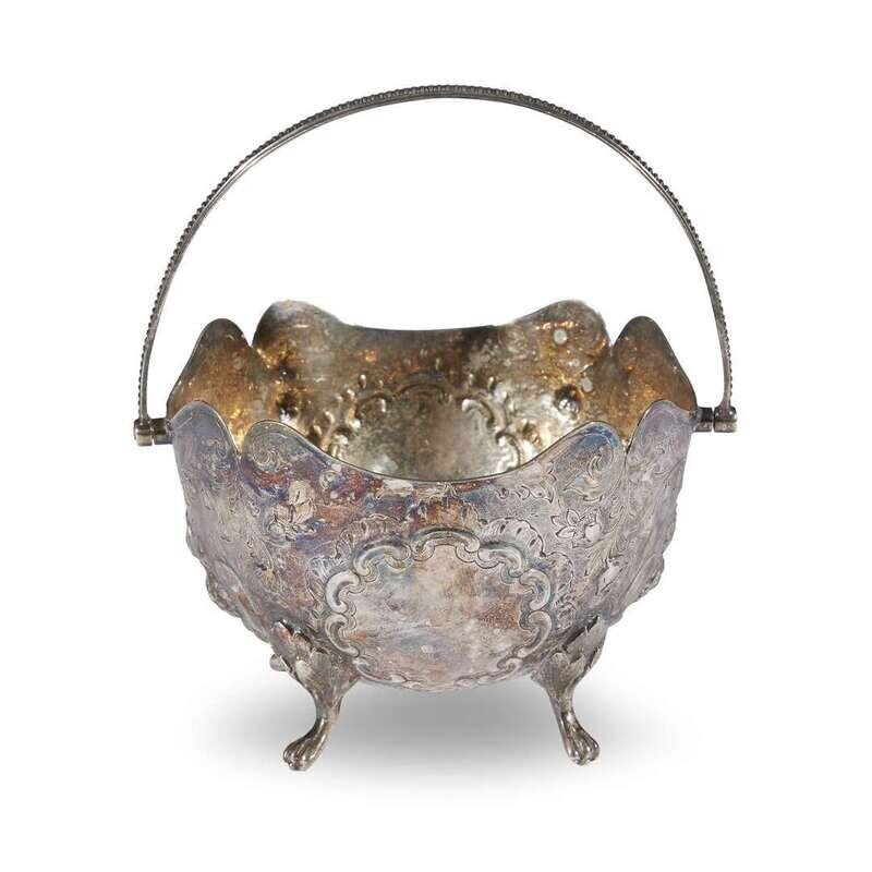 A Louis XV style silver repousse swing-handled bowl Marks indistinct, 19th century