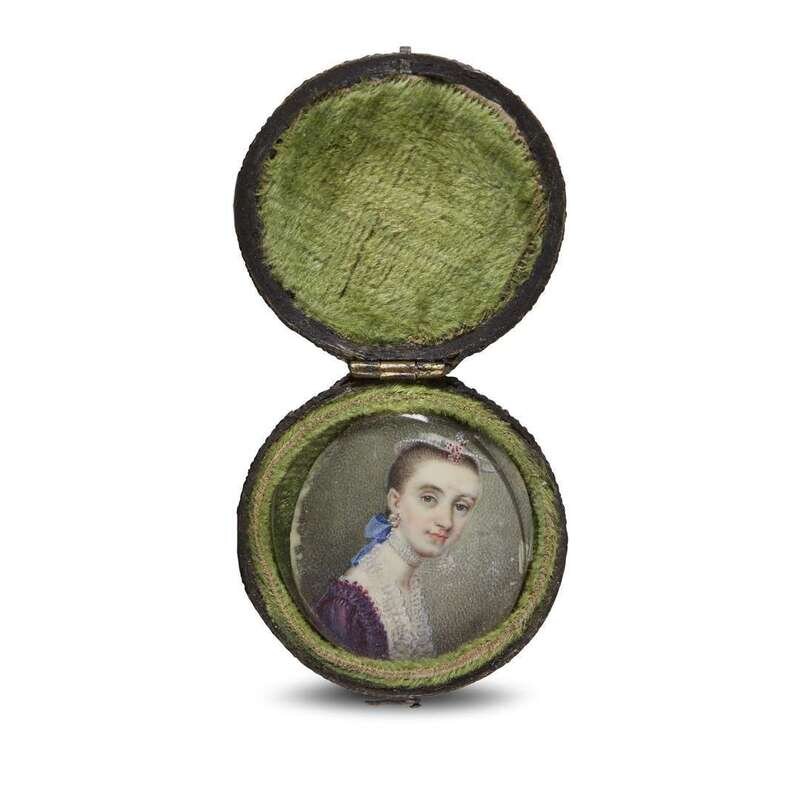Watercolor on ivory, in a circular case.