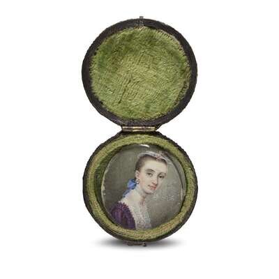 Anglo/American School 18th century Portrait miniature of a young lady in a lace cap
