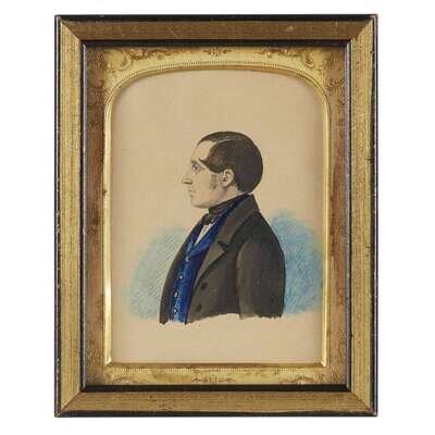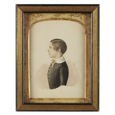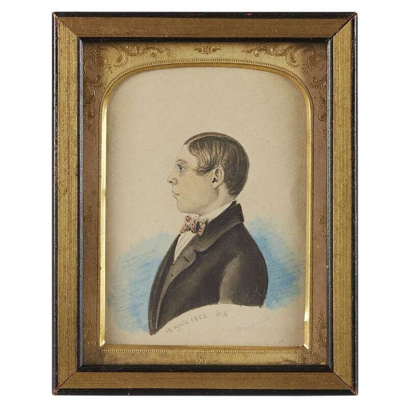Including a father, mother and two sons, one inscribed, "18 April 1852" and "HA," watercolor and ink on paper, framed.