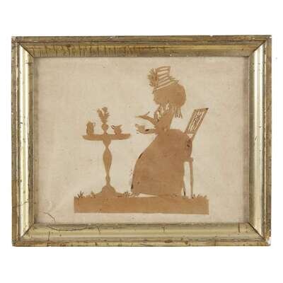 A silhouette of a seated woman having tea probably German, late 18th century