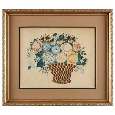 American School 19th century Theorem: basket of flowers