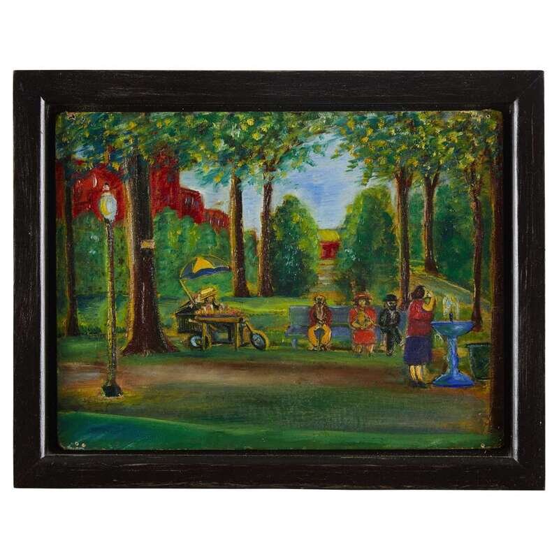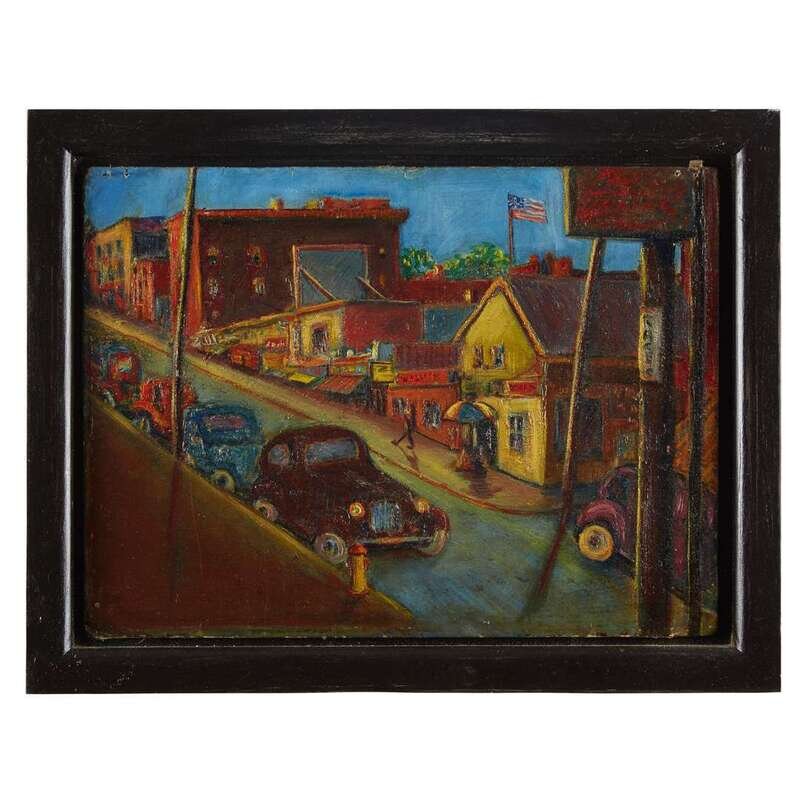 American School 20th century Two works depicting Port Jervis, NY: Park and Street Scene, circa 1940