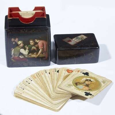 A Russian lacquer playing card case Apparently unmarked, circa 1900