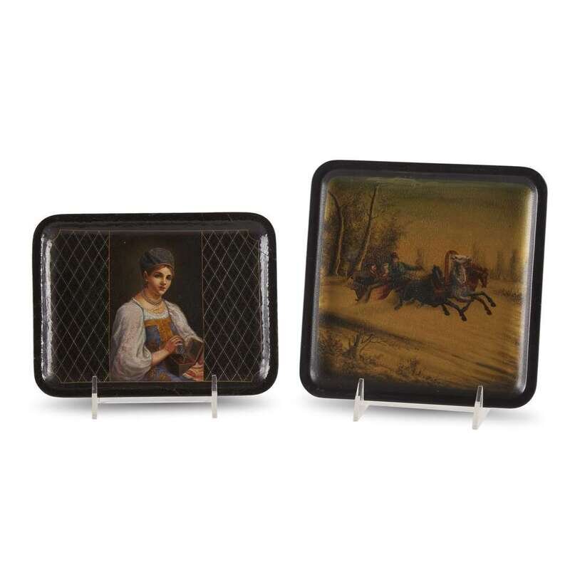 Two Russian lacquer trays Vishnyakov Factory, late 19th/ early 20th century